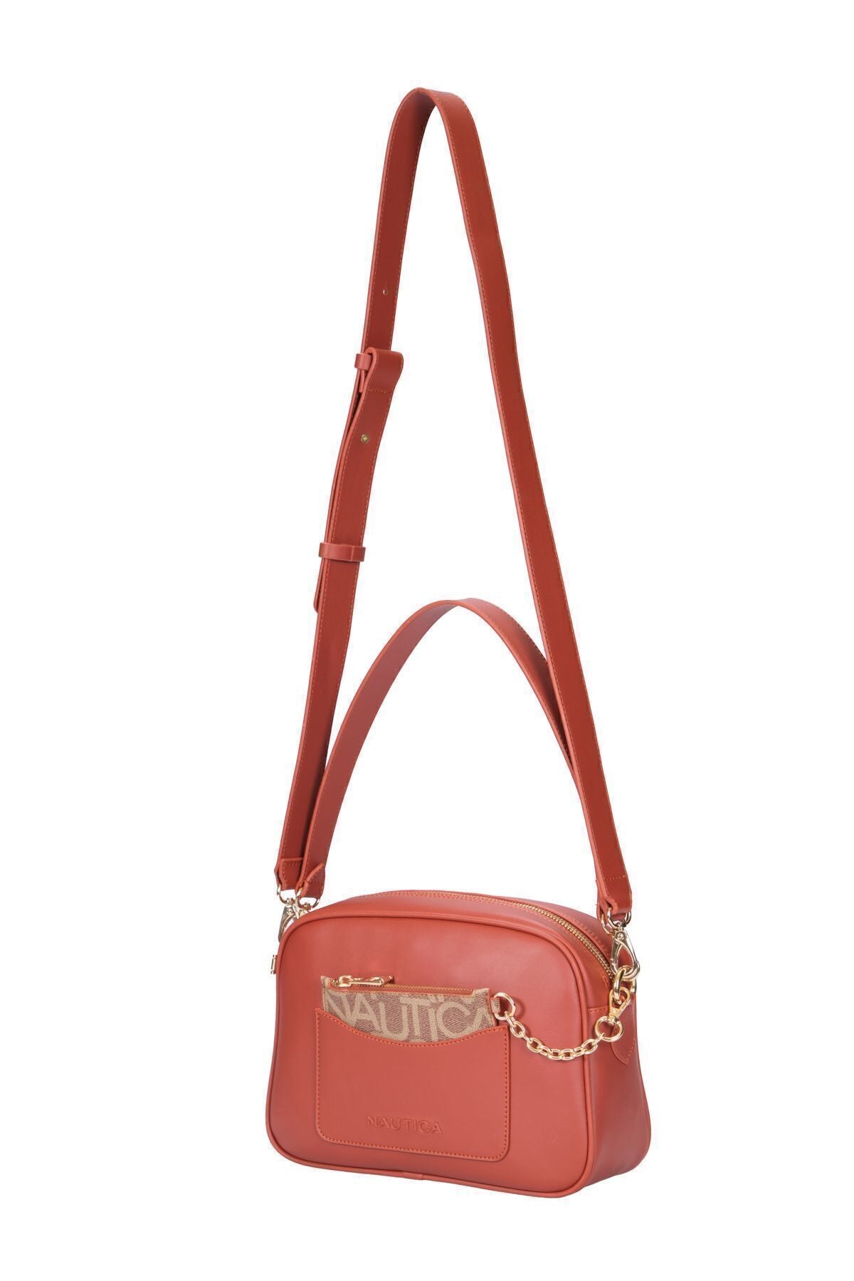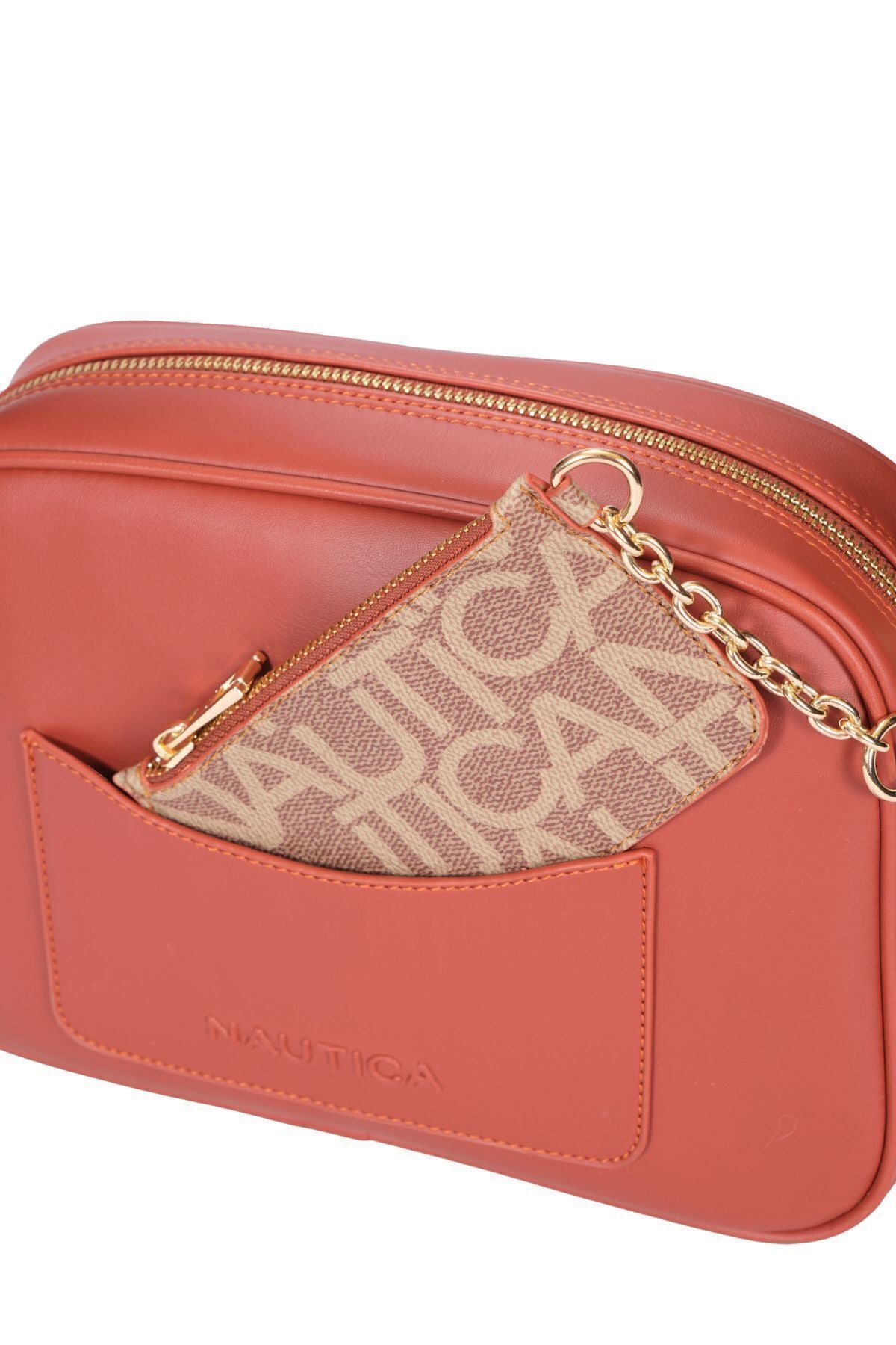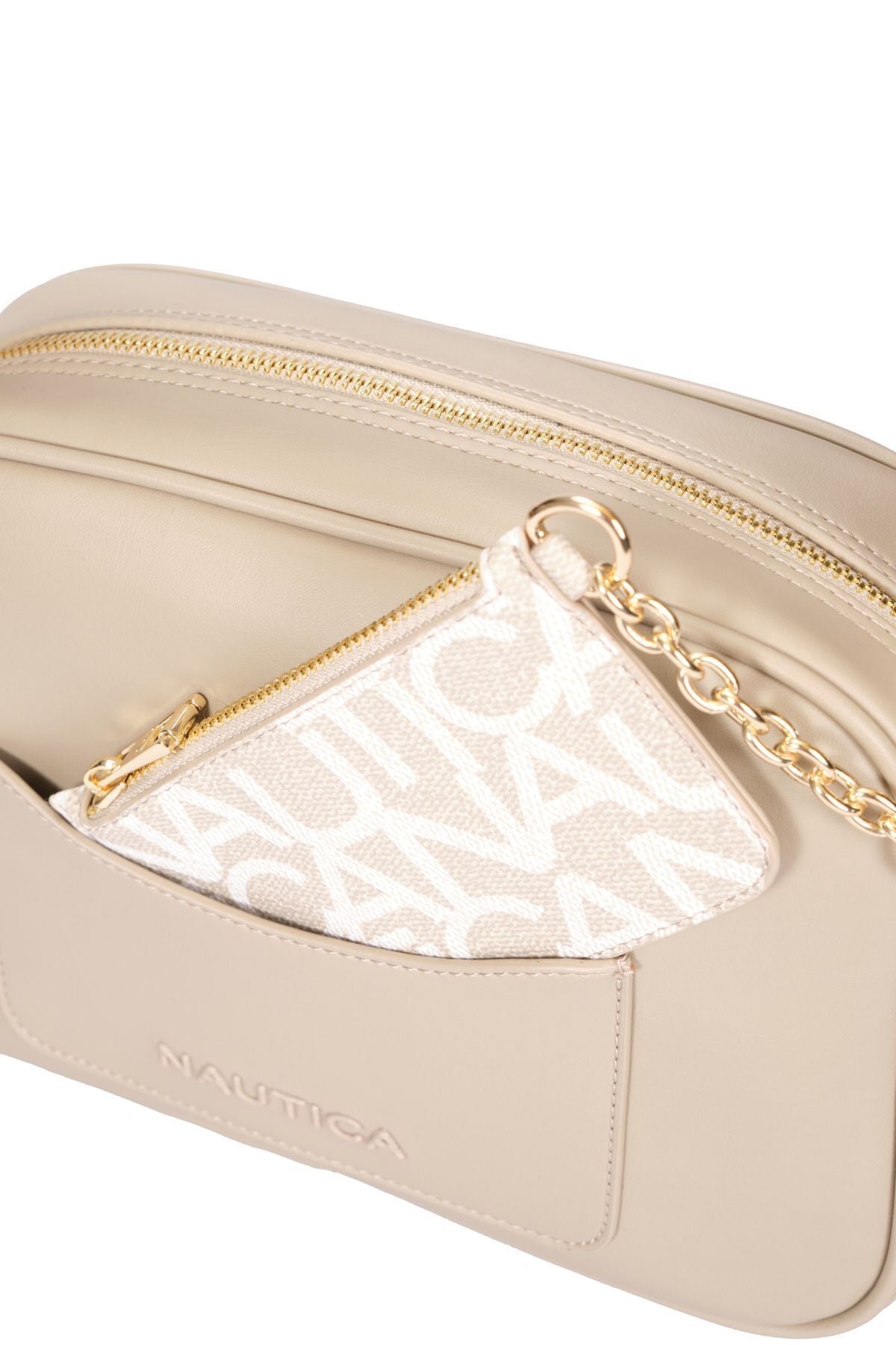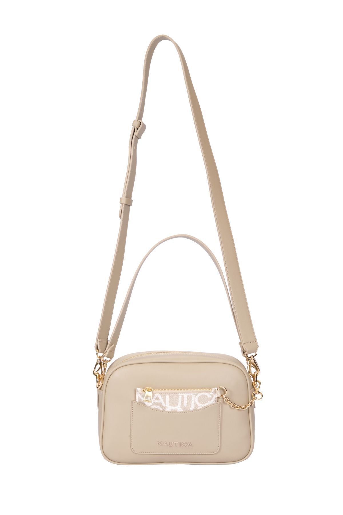 Arka ve iç kısımda yer alan fermuarlı cepler, eşyalarınızı düzenli bir şekilde saklamanıza yardımcı olurken, ön kısımda yer alan klipsli ve tercihe göre çıkarılabilir cüzdan, ekstra pratiklik sunuyor. Bu çanta, Nautica'nın modern ve zarif tasarımıyla her anınıza uyum sağlayacak bir aksesuar olarak öne çıkıyor.